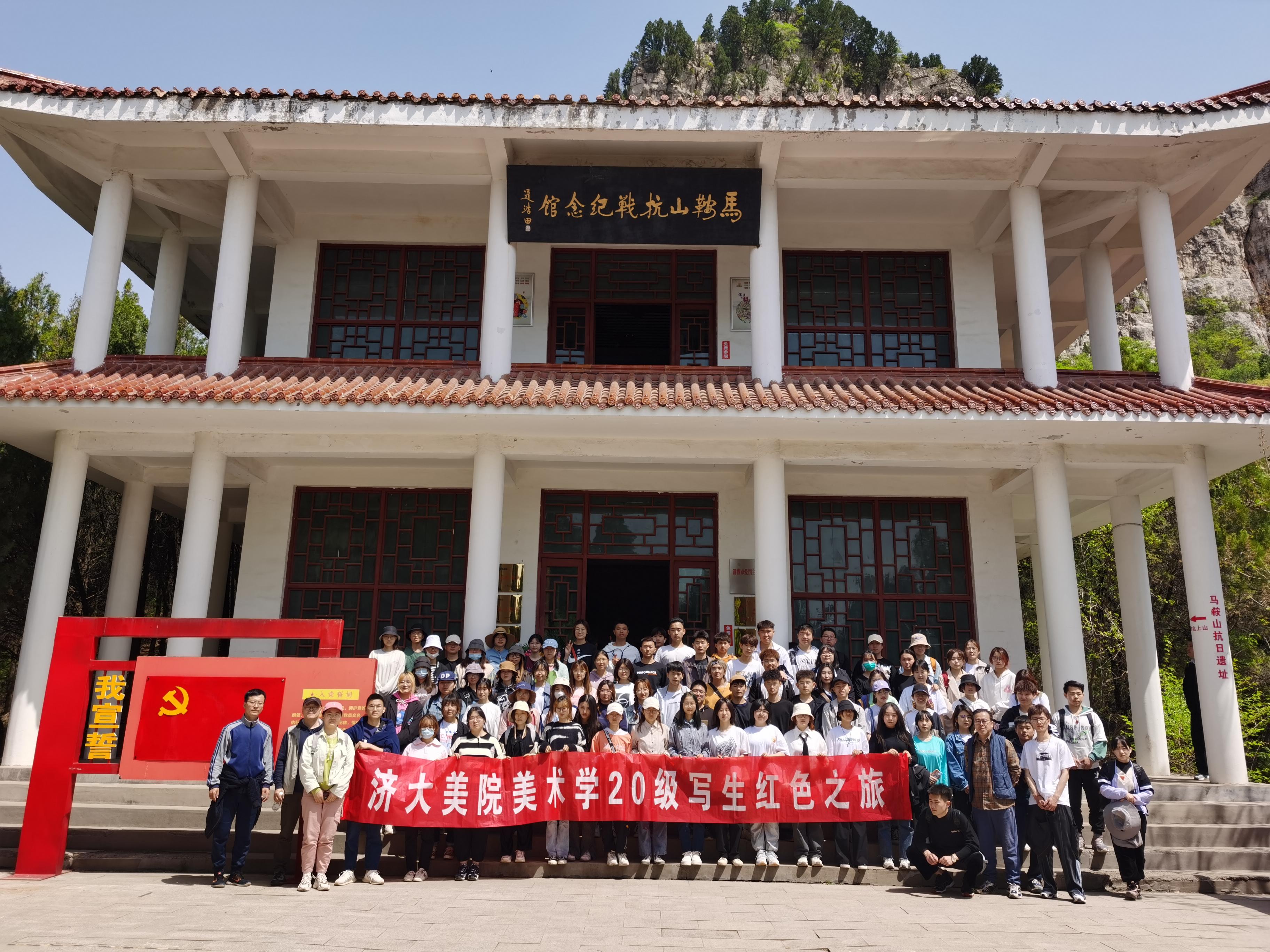 2021年4月28日,beat365官方唯一网站beat365正版唯一官网必一教工第一党支部的林波老师、李甲老师、马立洪老师,利用在淄博峨庄带学生讲授写生课程期间,带领美术学2020级的89名学生,赴淄博市淄川区马鞍山抗日革命遗址开展了主题创作活动。