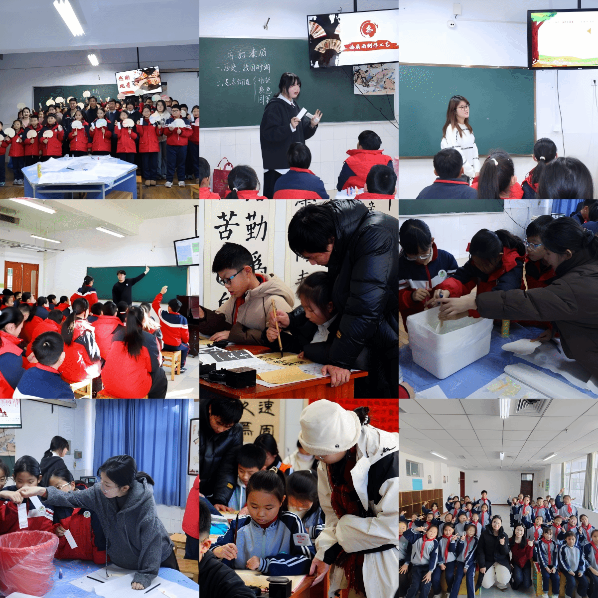当天下午,beat365正版唯一官网必一与音乐学院同向发力、分线推进,在两校6个班级及社团开展课堂与实践浸润。beat365正版唯一官网必一丁奕翔、成海明两位教师分别牵头开展漆艺与书法美育实践,丁奕翔示范指导学生完成漆画团扇、书签创作,在“水、色、物”的动手体验中培育审美素养、增强文化认同;成海明围绕汉字文化与笔法要领进行示范讲解,组织社团同学开展主题练习,让学生在笔墨之间体悟中华优秀传统文化的精神气韵;音乐学院由教师梁晓宁牵头,以影视配乐赏析为引,通过片段聆听、旋律拆解与合唱体验等方式,引导学生在“听得懂、唱得出”的参与中体悟家国情怀、亲近自然之美。两院学生助教分组协同指导,推动美育在课堂里落细落实、在实践中浸润生长。