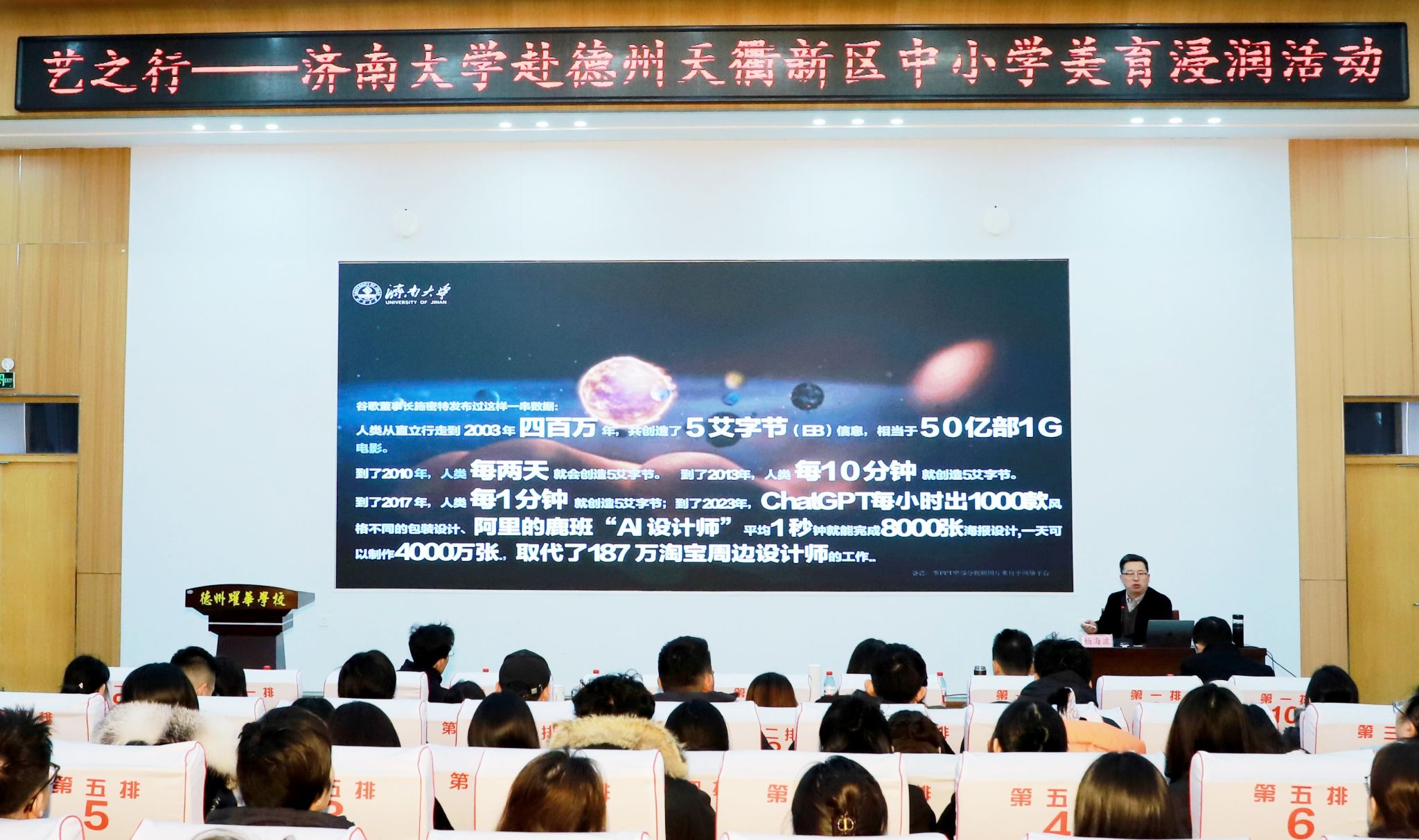 近年来,学校坚持党委统筹、系统推进,着力构建“大美育”工作格局,系统实施“美育教学改革深化、学科提质发展、实践涵养赋能、教师素养提升”四大行动,推动美育从“活动供给”向“体系育人”跃升。作为山东省第二批美育浸润行动计划试点高校,学校对口支持德州市天衢新区,持续探索高校与中小学“手拉手”协同机制。下一步,学校将紧扣国家和省级美育浸润行动部署,依托《beat365官方唯一网站美育浸润行动实施方案(2025—2027)》和“四大行动”总体框架,进一步做实校地协同、做强教研共建、做优师资赋能,让美育真正成为培根铸魂的“润心工程”、滋养成长的“底色工程”,以更有力的济大实践赋能中小学美育高质量发展。