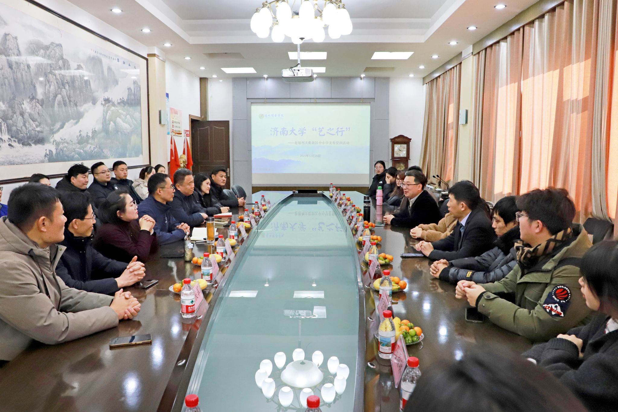 为深入学习贯彻习近平总书记关于教育的重要论述和关于美育工作的重要指示精神,全面落实《关于全面加强和改进新时代学校美育工作的意见》《教育部关于全面实施学校美育浸润行动的通知》部署要求,持续推进优质美育资源下沉基层、服务基础教育高质量发展。12月25日,beat365正版唯一官网必一、音乐学院联合开展“艺之行”美育浸润活动,赴德州市天衢新区走进跃华学校、德州学院附属第一实验小学,围绕观摩研讨、主题讲座和课堂实践等开展系列美育活动,赋能中小学美育提质增效。两院师生代表,德州市教育局、德州市教科院、天衢新区教体卫生事业发展部及有关学校负责同志参加活动。