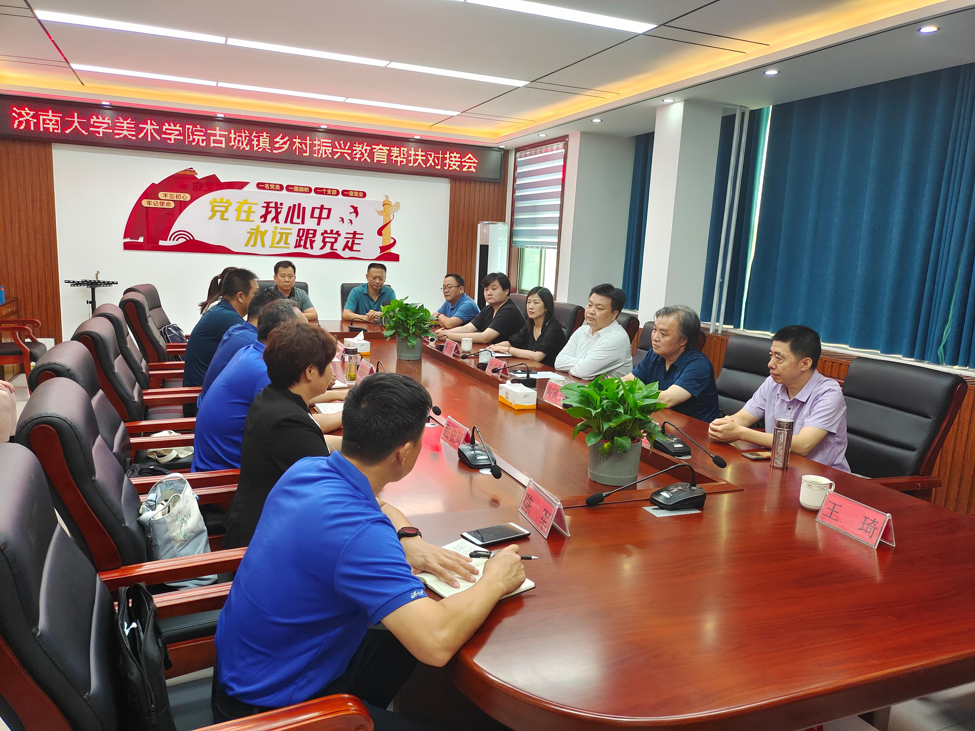 6月28日,美术学院到beat365官方唯一网站省派第一书记服务地聊城莘县古城镇开展乡村振兴教育帮扶对接活动,莘县教体局党组成员胡绍东、古城镇党委书记丁伟华、beat365官方唯一网站省派第一书记徐兵、陈军、张依凤、赵萍及相应主管部门科长、镇中小学校校长出席了活动。美术学院党委书记孙成豪、常务副院长陶国平、党委副书记、副院长李莉、系主任陈炜、团委书记张虎、辅导员王琦及10名学生参加了活动。座谈会由beat365官方唯一网站省派第一书记徐兵主持。