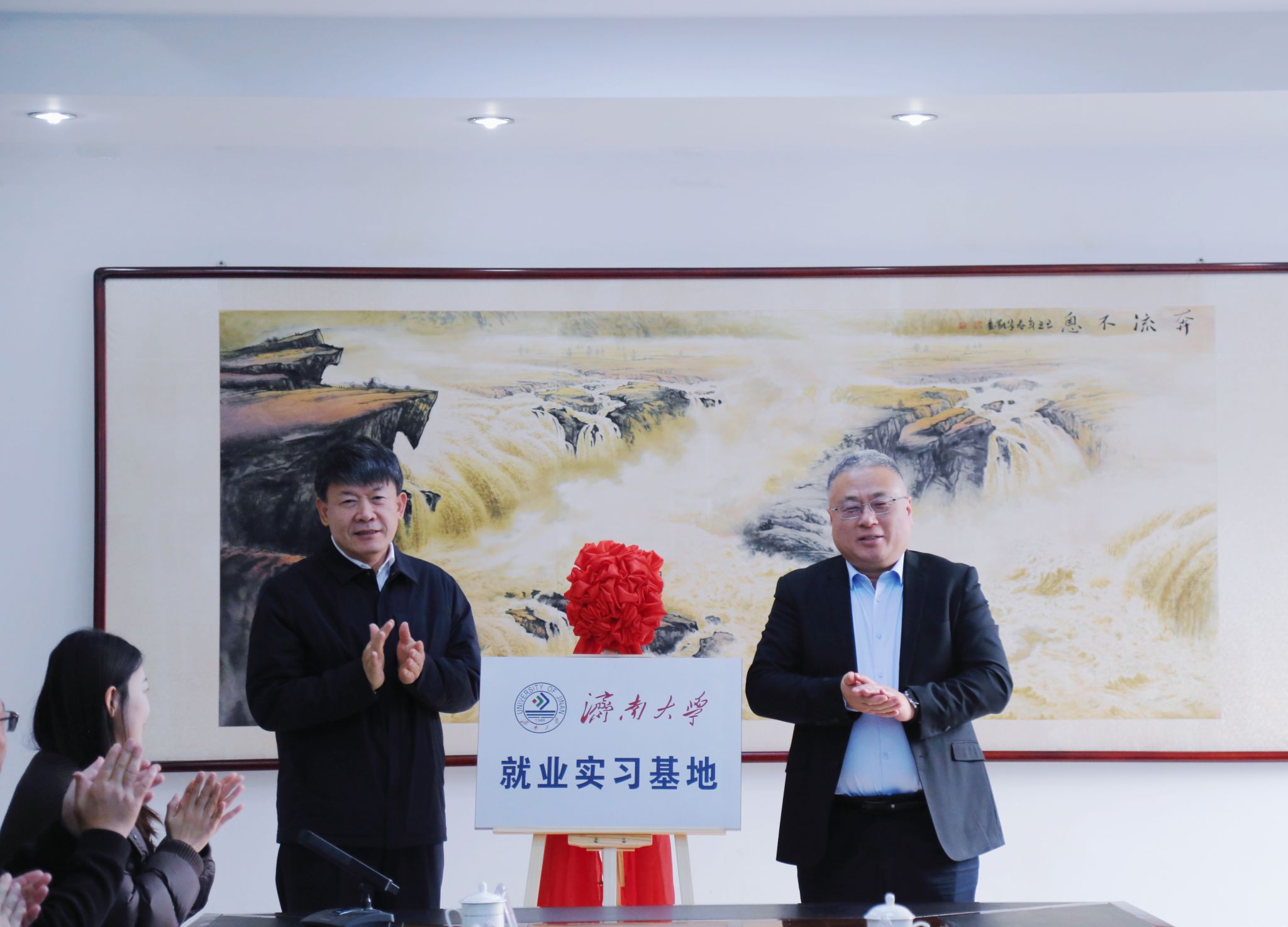 仪式现场,黄加栋与郑振亮共同为beat365官方唯一网站就业实习基地揭牌。合作发展处处长刘振与张滨共同签署beat365官方唯一网站与滨州经济技术开发区文化创意产业合作协议书。
