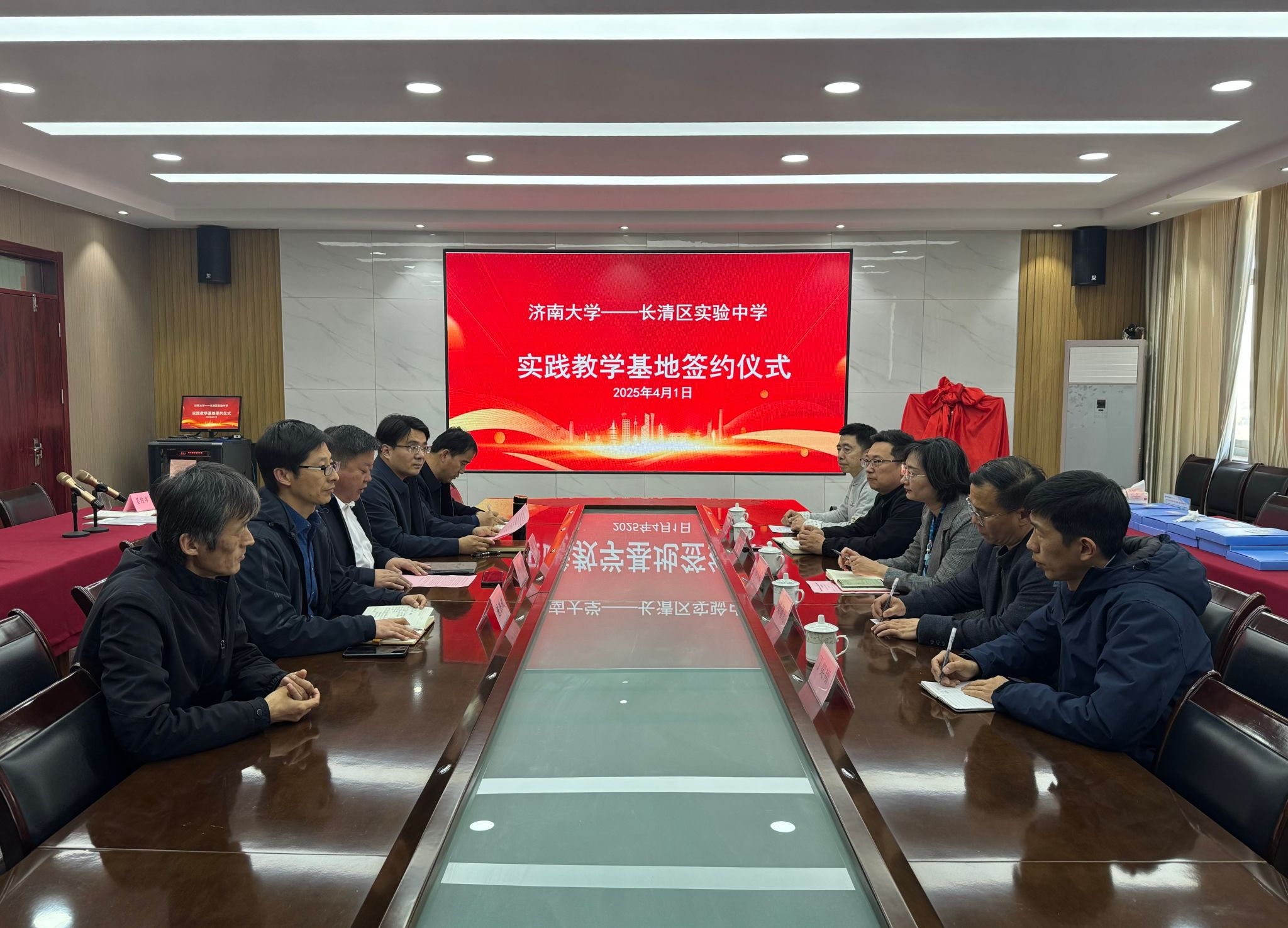 陈春锋介绍了学校和学院发展的基本情况,对长清实验中学长期为学院学生提供实践平台和指导表示感谢。希望通过双方的合作交流,实现资源共享、优势互补,共同探索大中小学美育一体化建设的新路径,为培养德智体美劳全面发展的社会主义建设者和接班人贡献力量。
