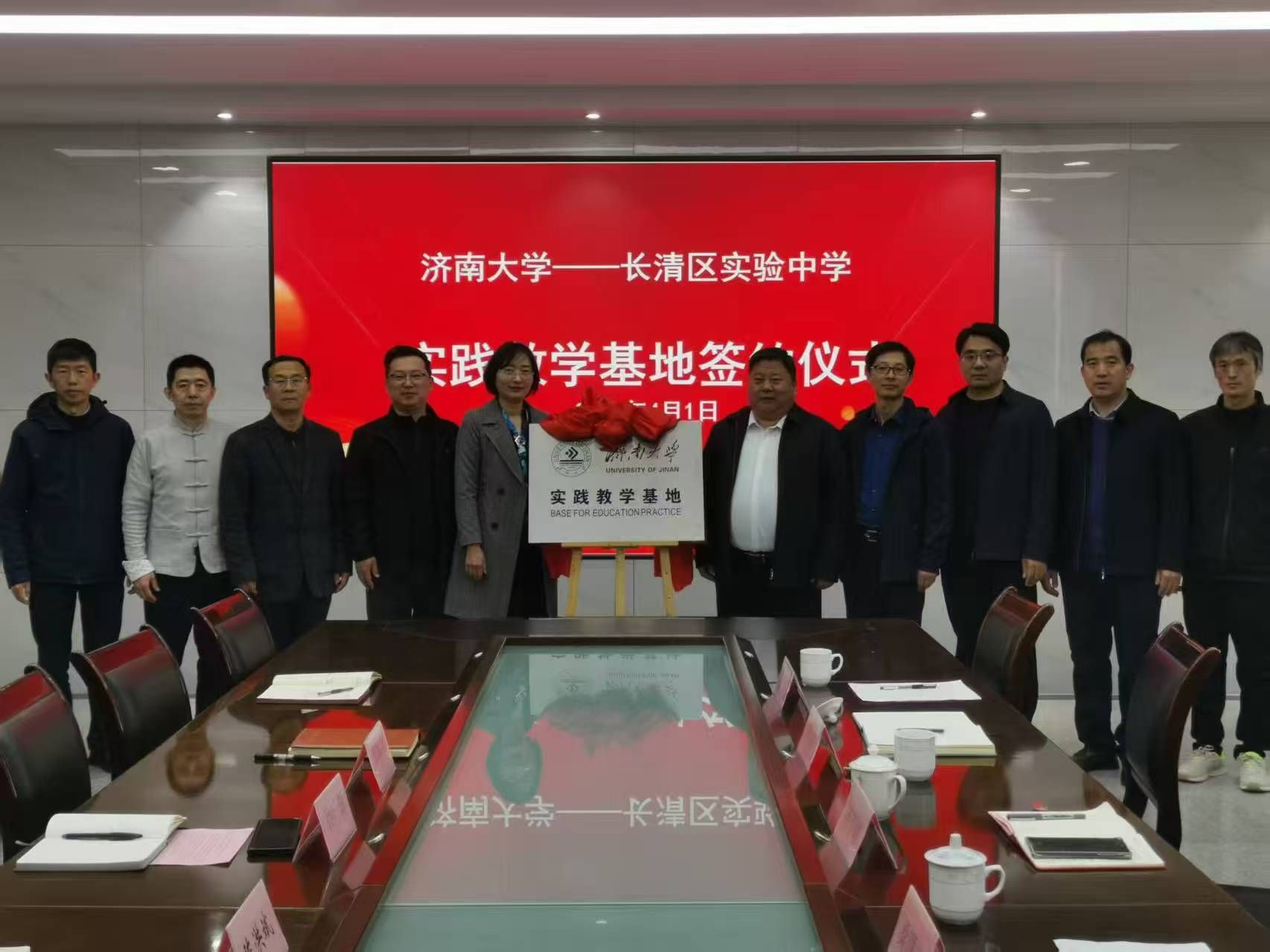 在双方共同见证下,进行了“beat365官方唯一网站实践教学基地”揭牌以及《beat365官方唯一网站本科实践教学基地建设协议书》签署仪式,并为长清实验中学的优秀校友代表、优秀教师代表薛平峰和杨怀镇两位老师颁发“校外优秀教育实习指导教师”证书。